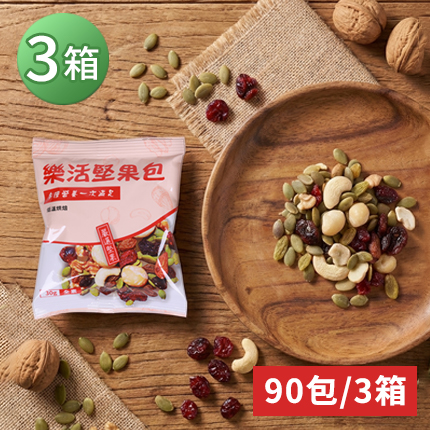 品名:樂活堅果包 成分:南瓜籽、葡萄乾、青提子、夏威夷豆、蔓越莓、杏仁、核桃、腰果 原產地:台灣 重量:30克/包