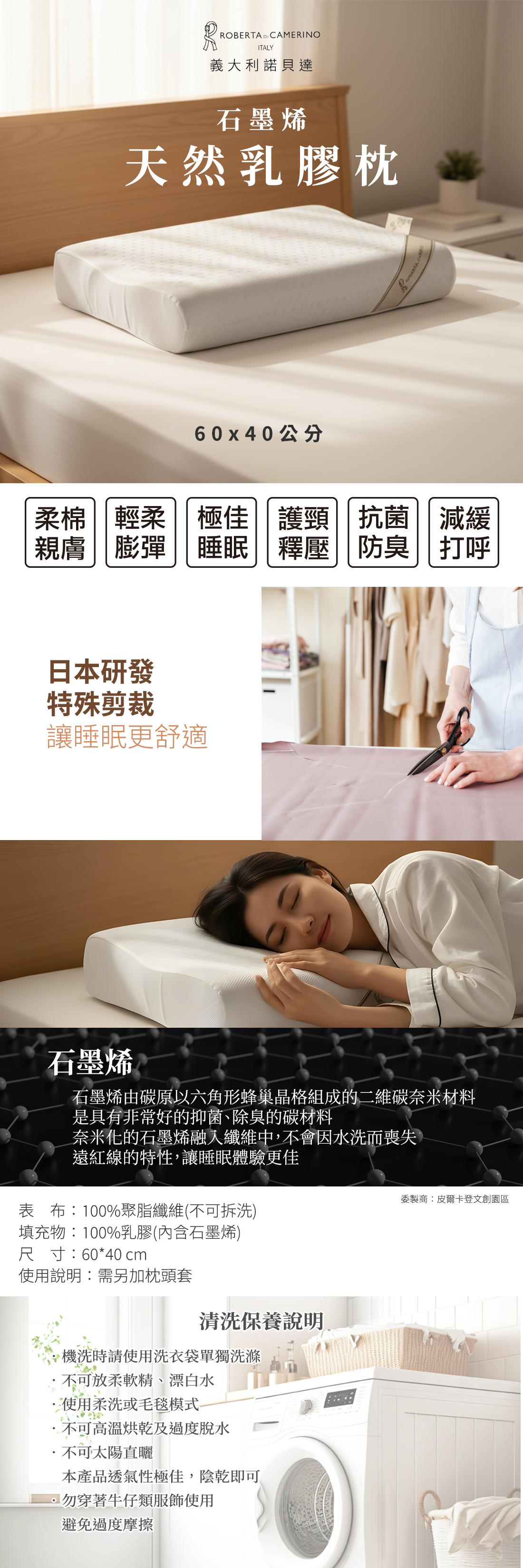 【義大利諾貝達】石墨烯 天然乳膠枕(護頸/釋壓)枕頭