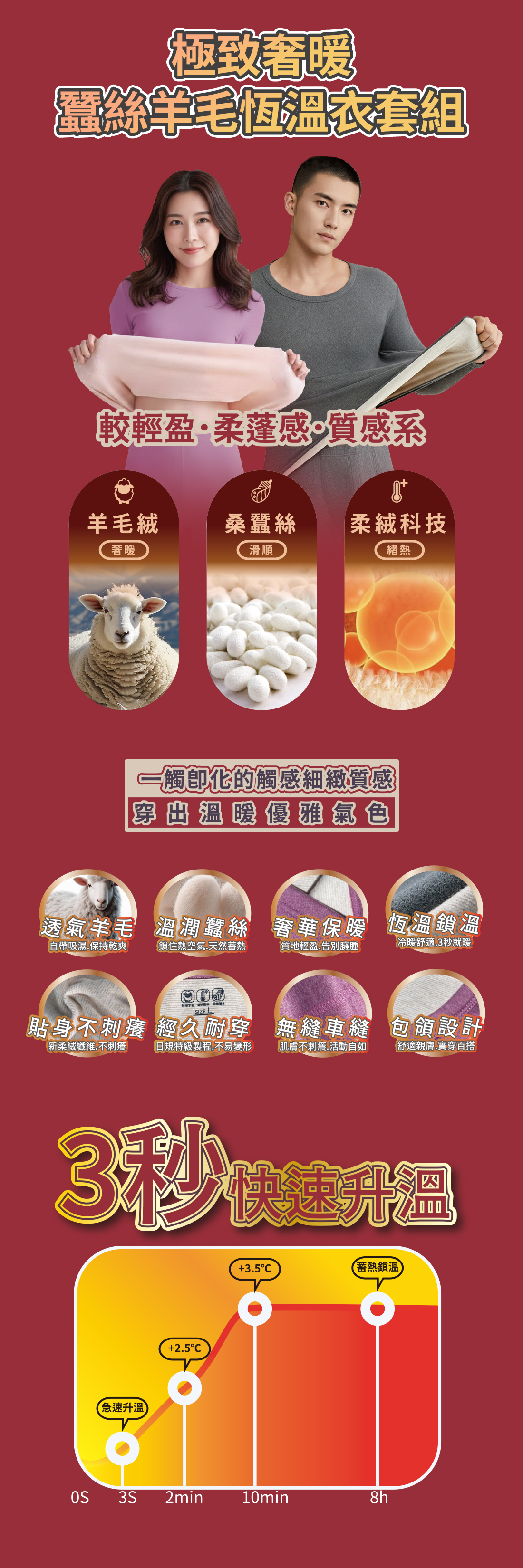 超柔軟科技 羊毛蠶絲恆溫【套裝】上衣+長褲 贈 發熱上衣