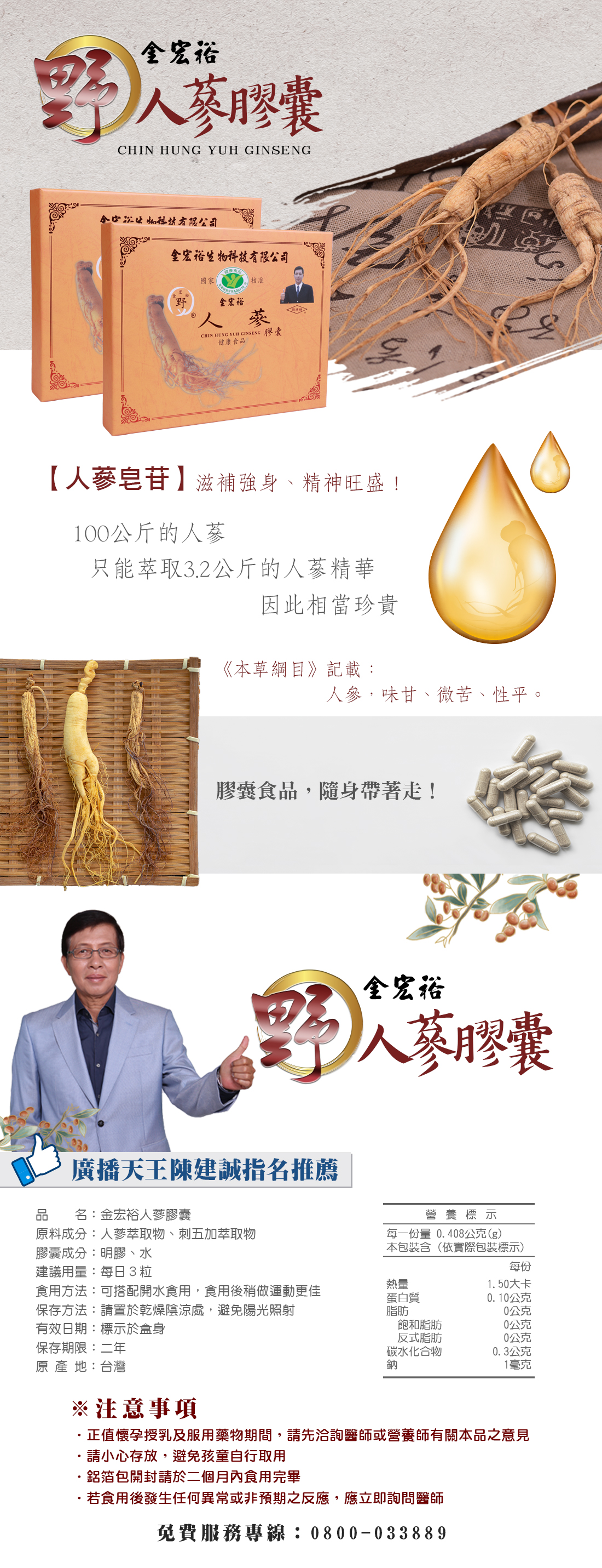 .廣播天王陳建誠強力推薦 .含人蔘皂苷 .滋補強身